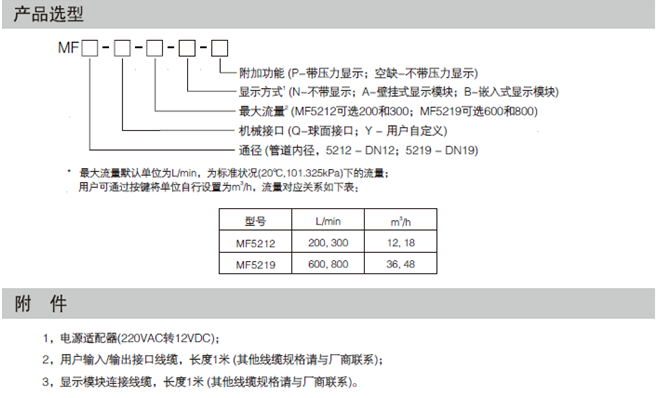 MF5212氣體(ti)質量流(liu)量計産(chǎn)品選型(xing):